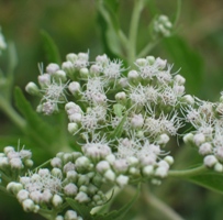 Flower: Head to 1/ in. long. Slender. Ray flowers absent. Disc flowers 10-15 whitish. Heads several. Cluster forms terminal mass.