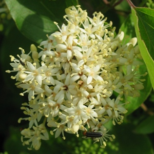 Flower:White with four petals. Tiny flowers combine into showy clusters 2-3 in. wide.