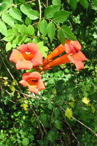 Flower: Orange, orange-red to red, 2 -3.5 inches long, trumpet-shaped with 5 lobes in clusters.